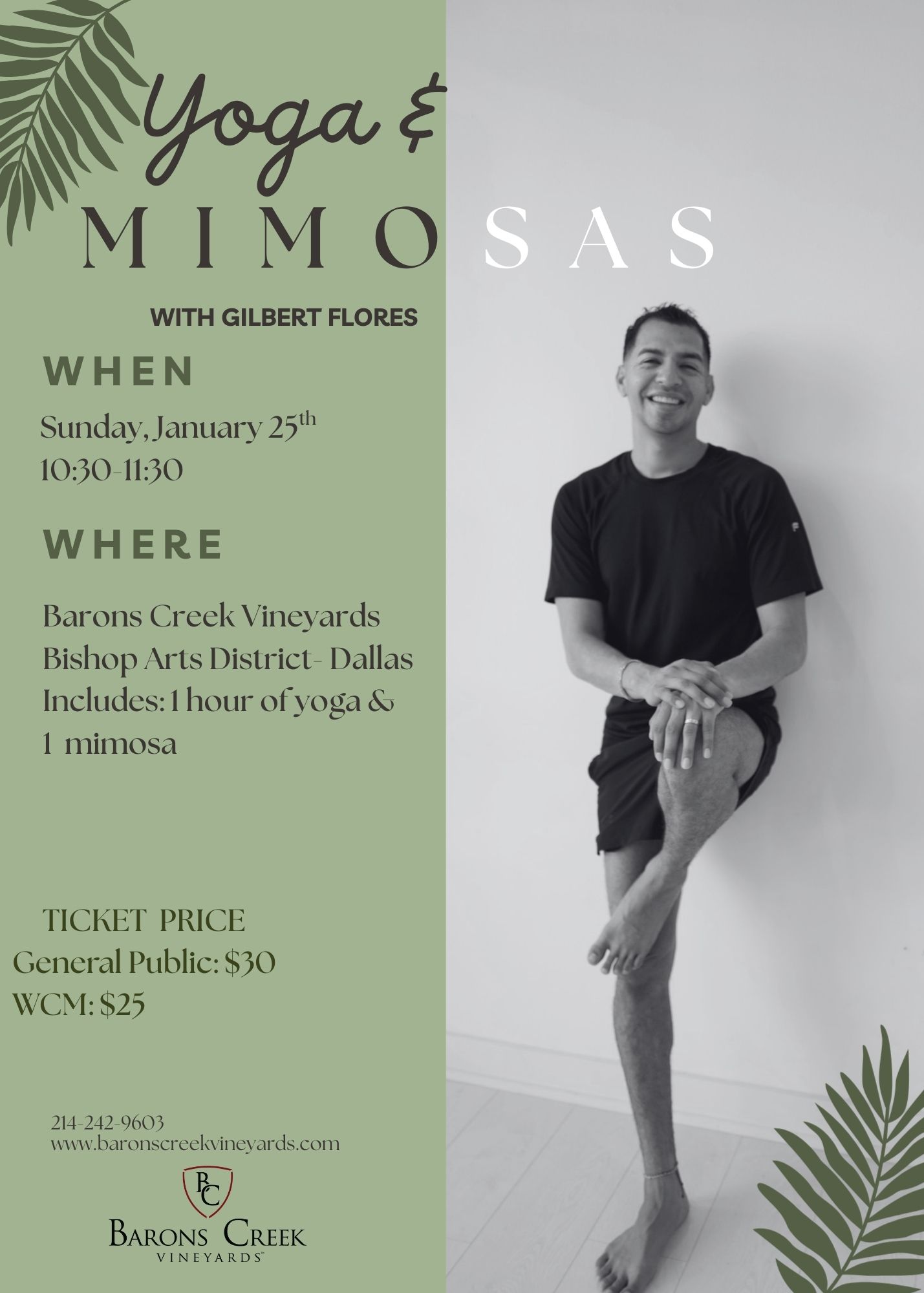 FeaturedDallas- Bishop Arts District 418 N Bishop Ave, Dallas, TX, United StatesStart your morning right with a rejuvenating all-levels yoga flow led by Gilbert Flores, followed by a refreshing mimosa at the winery. This class is designed to help you unwind, reset, and find your balance in a relaxed and welcoming environment. Please note: Guests must bring their own yoga mat. What’s Included: 60-minute guided yoga…